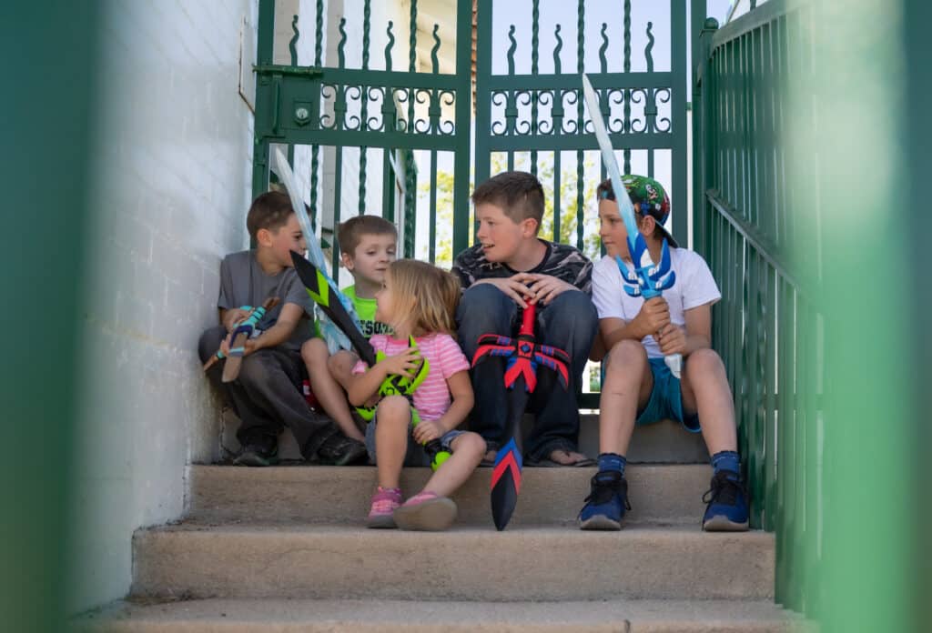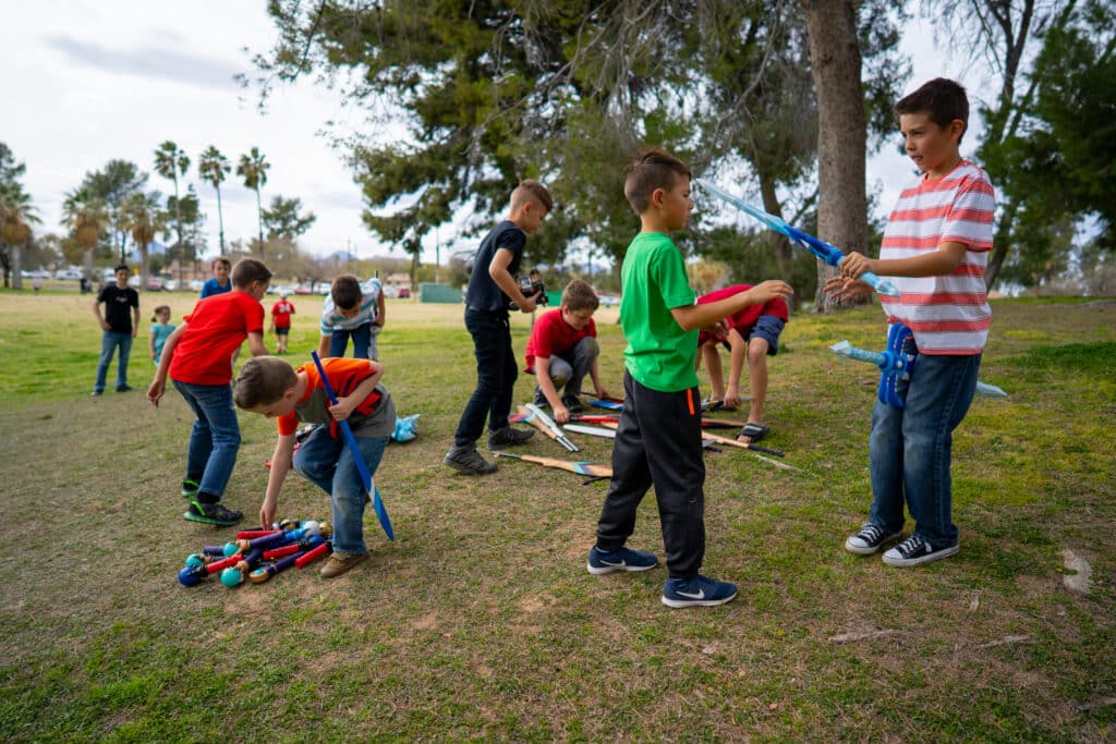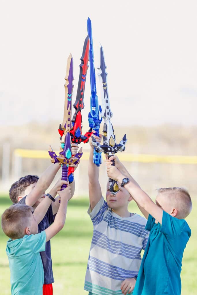 We LOVE your incredible swords! I have five kids, my husband and I and we have no man unarmed at our house! I’m so grateful we found you!! You have given us so many happy memories plus hours of delightful exercise outside! They are the one toy that never gets old! We love how durable and creative they are. They can stand up to my four boy’s imaginations as well as their strength. We just want you to know how very much we appreciate what you’re doing and from all of us at the Harris home, we send you a huge high five for a job well done! We think you are the absolute BEST!!!! Keep up the great work! We need you so we can keep coming back for more!